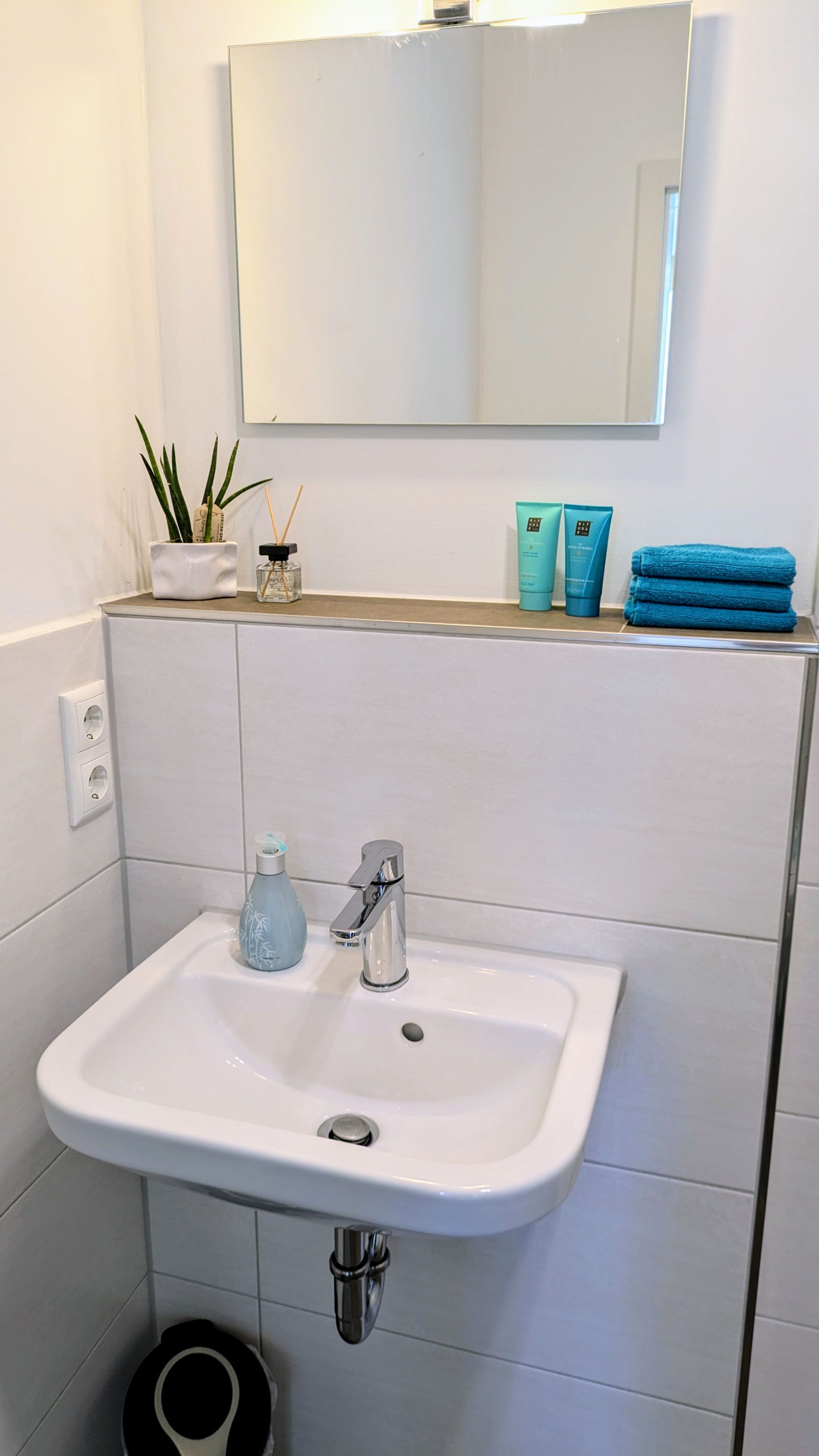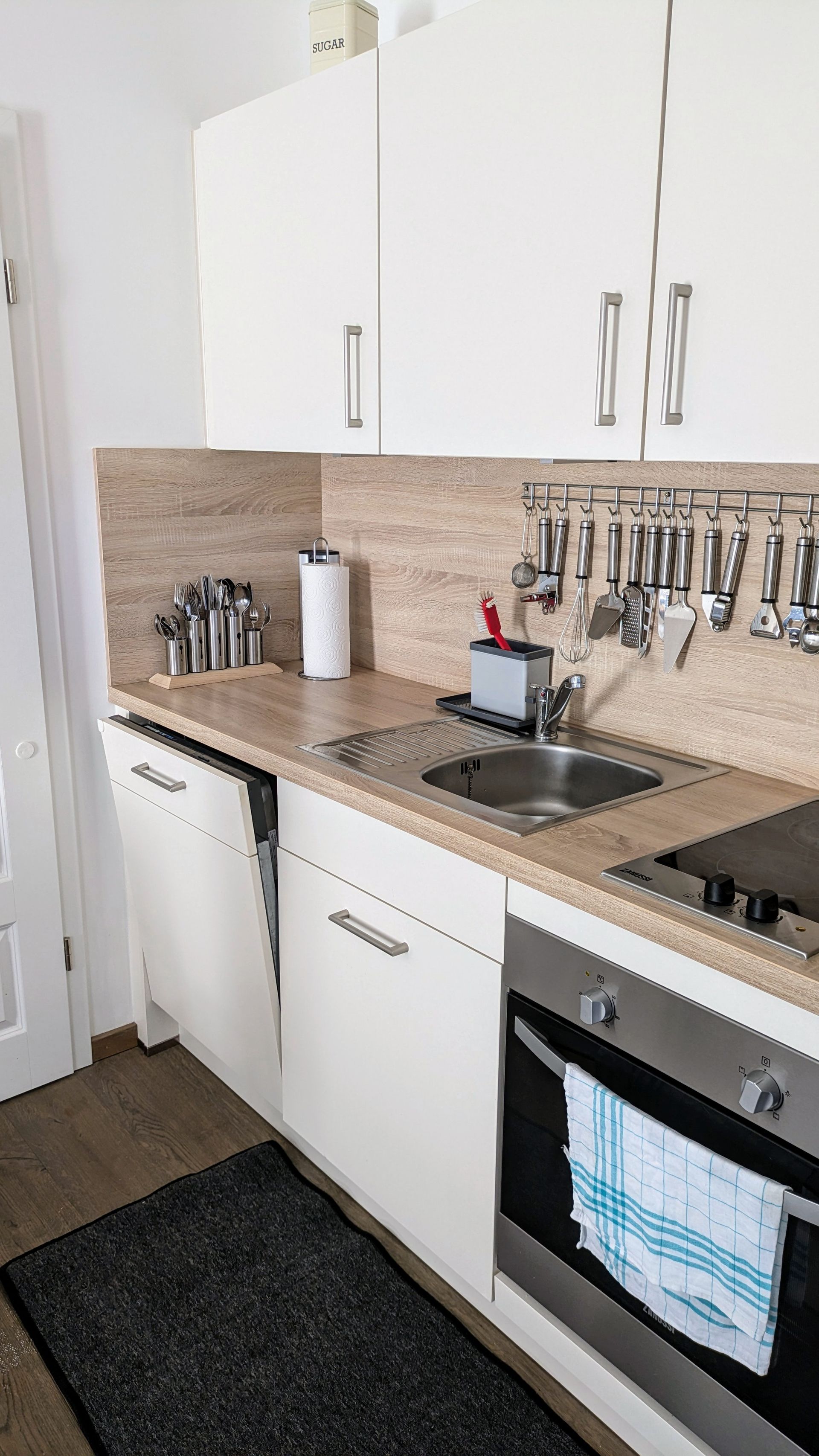 Mit Kühlschrank und Gefrierfach, 2-Ceranfeldern, Backofen, Mikrowelle, Bialetti, Wasserkocher, Toaster, Spülmaschine, usw.